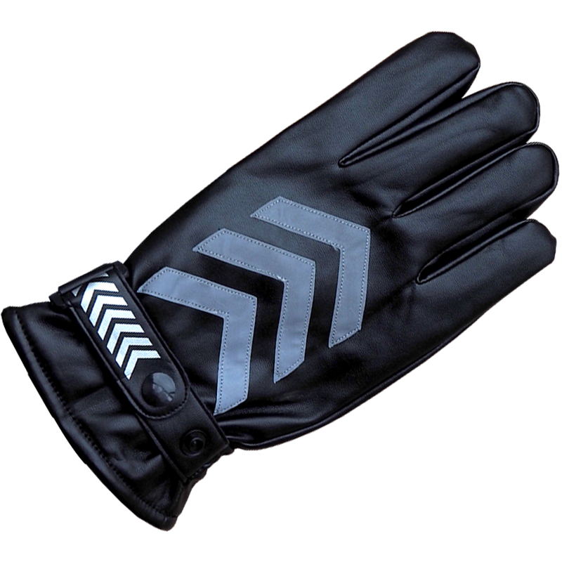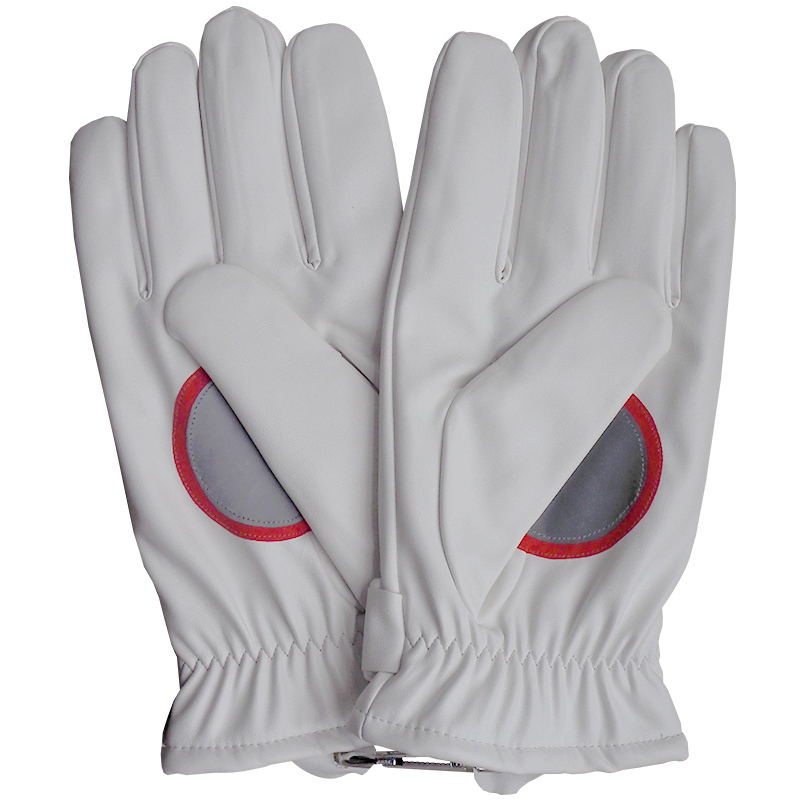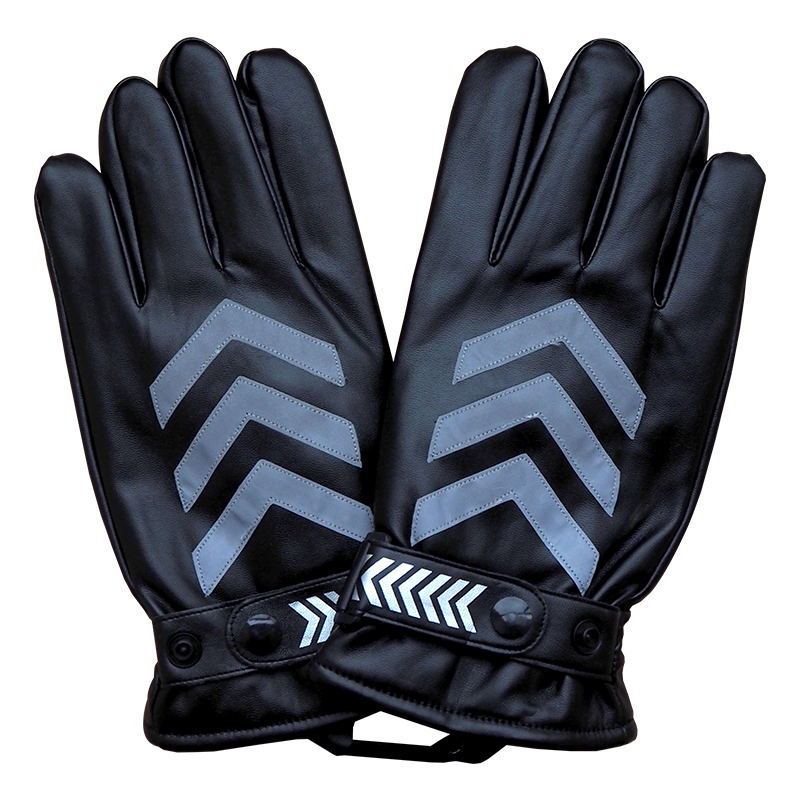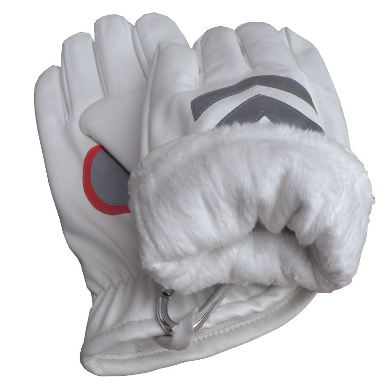 Winter velvet reflective leather gloves Traffic warm men and women security command road administration thickened lint white and black leather gloves