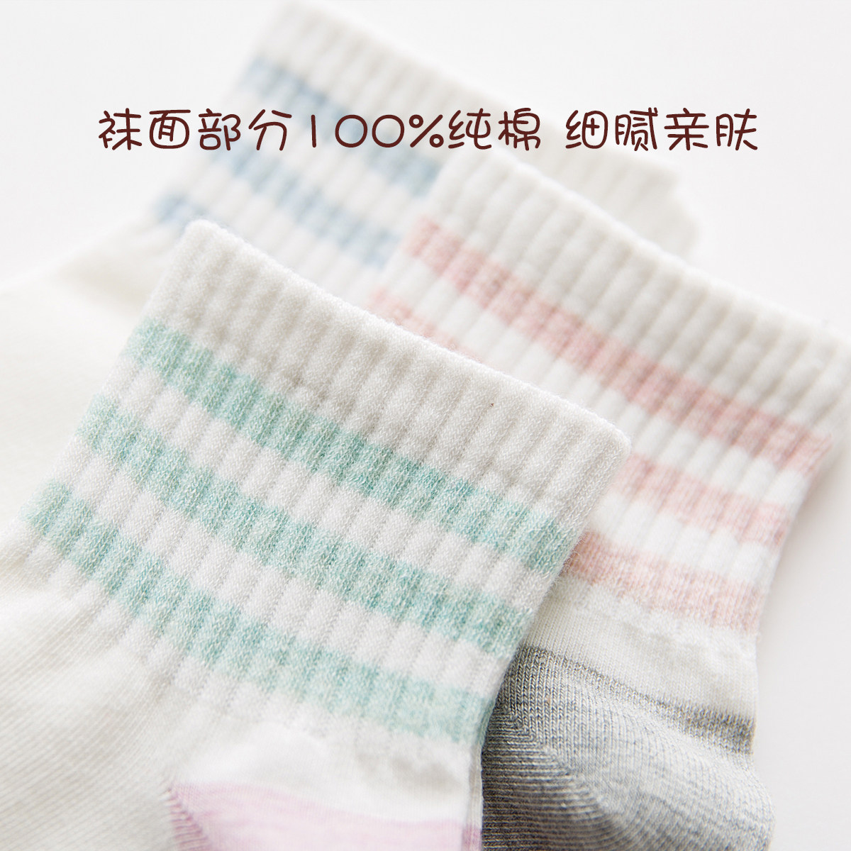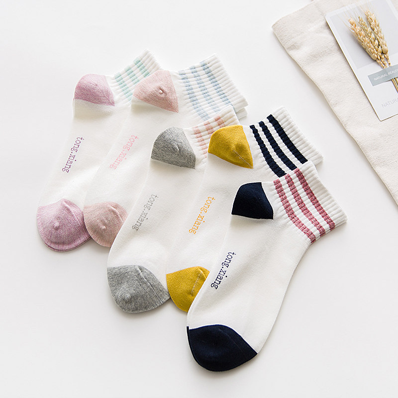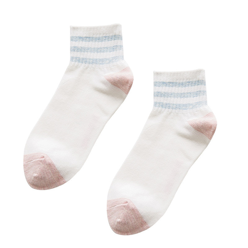 Strip socks in summer stockings thin spring and autumn pure cotton short socks Korean Edition College wind day series short stockings