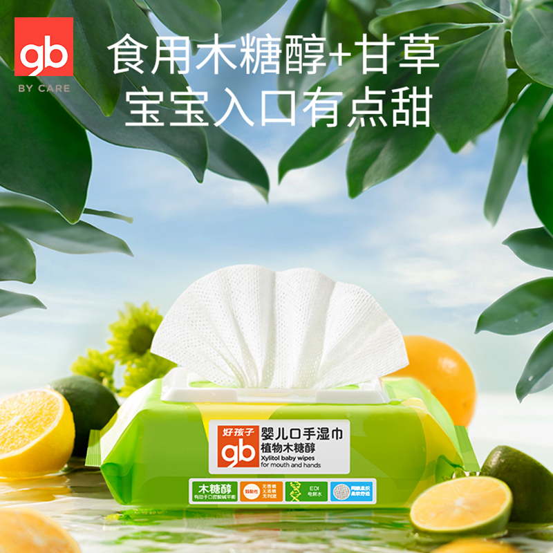 gb good child wet wipes baby hand mouth wet tissue baby newborn special xylitol 80 draw 24 bag with lid