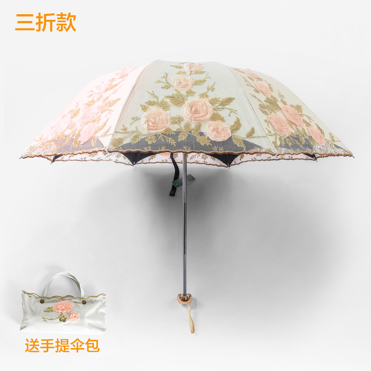 New sunscreen anti-UV black gum shading umbrella Two-fold lace embroidery shading umbrella Princess umbrella sunny Umbrella Women's umbrella