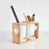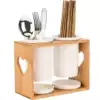 Bamboo and wood double-barrel ceramic chopstick holder Double-seat chopstick cage Double-row chopstick holder with wooden frame Creative kitchen shelf Chopstick holder