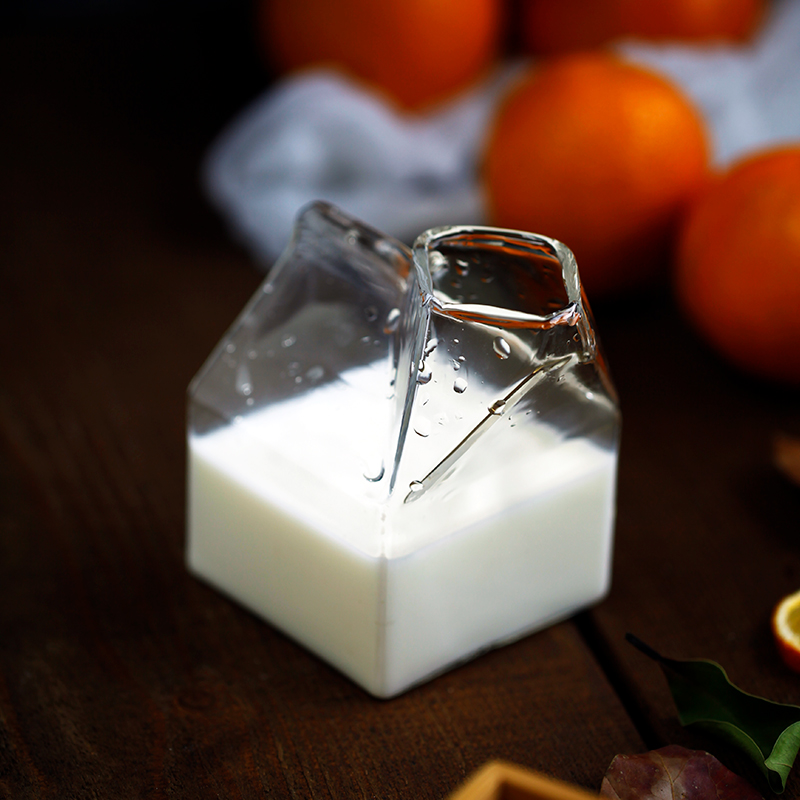Nordic creative milk box shape heat-resistant glass milk cup small house transparent square juice cup