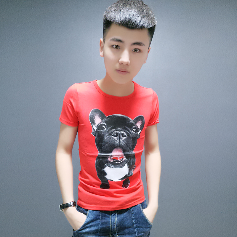 New men's body short sleeve T-shirt round collar small version Short Clippers Red man the same half-sleeve social spirit little boy blouse