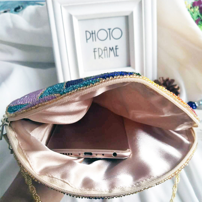 Creative hand-made diy mobile bag rainbow bead bag slanted bead bag female colored hot balloon embroidery weaving zero wallet