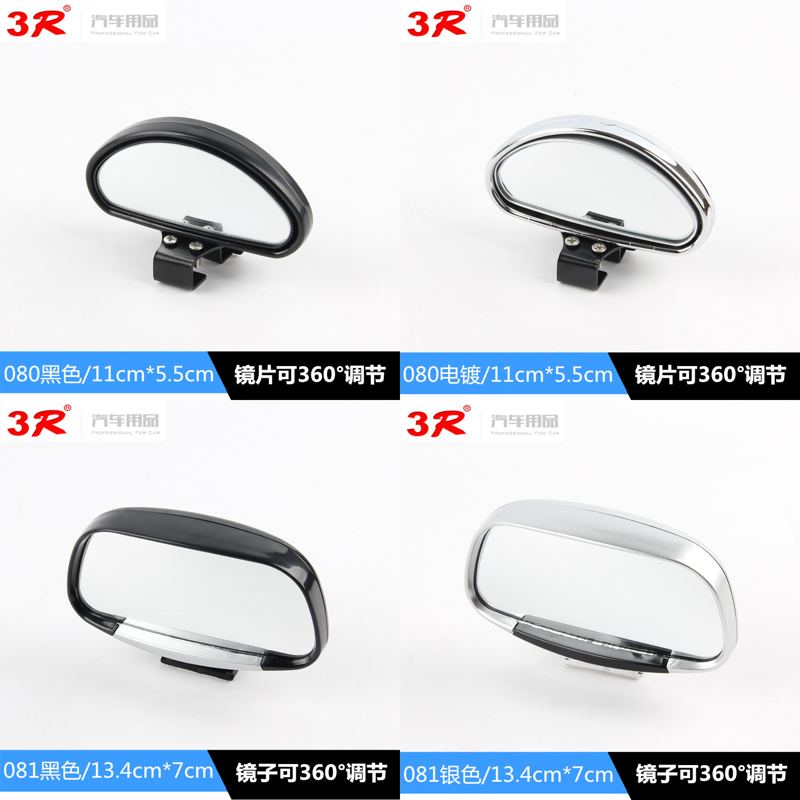 3R car coach reversing rearview mirror small round mirror blind spot mirror wide-angle mirror adjustable reflective auxiliary mirror on the mirror