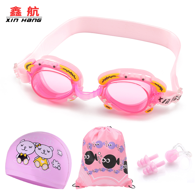 Xinhang children swimming glasses boy girl swimming goggles swimming hat suit waterproof and fog-proof big child swimming gear