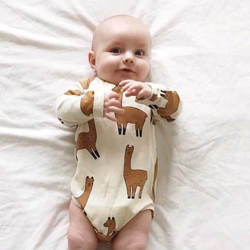 ins Full print Alpaca baby triangle climbing suit Spring and Autumn pure cotton baby one-piece long sleeve romper Newborn pajamas