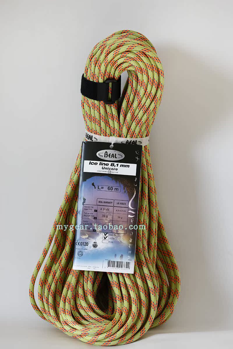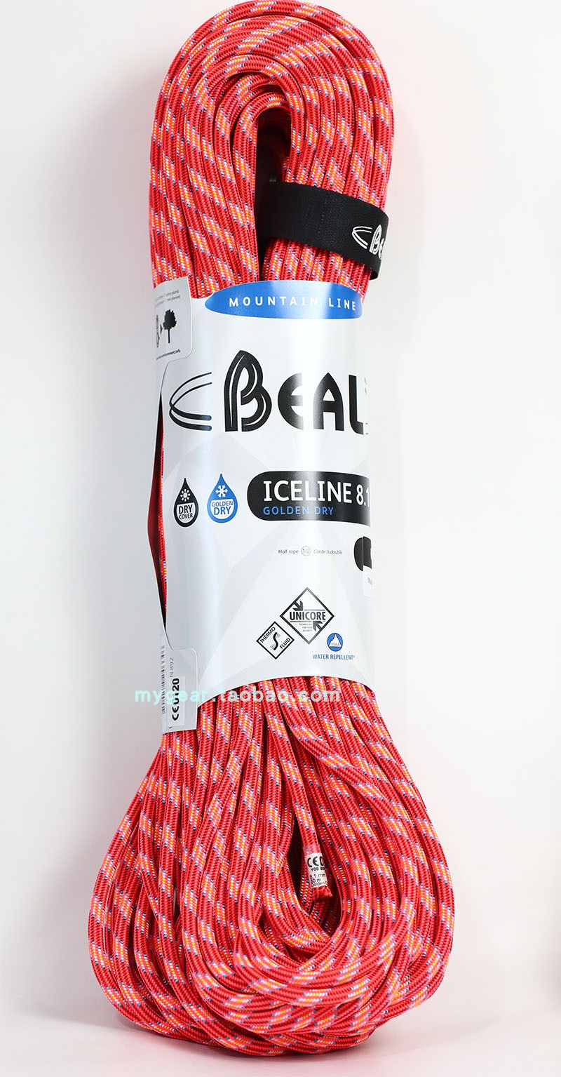 Beal ICE Line 8 1 GoldenDry French origin 60m mountaineering ice climbing double rope half rope spot