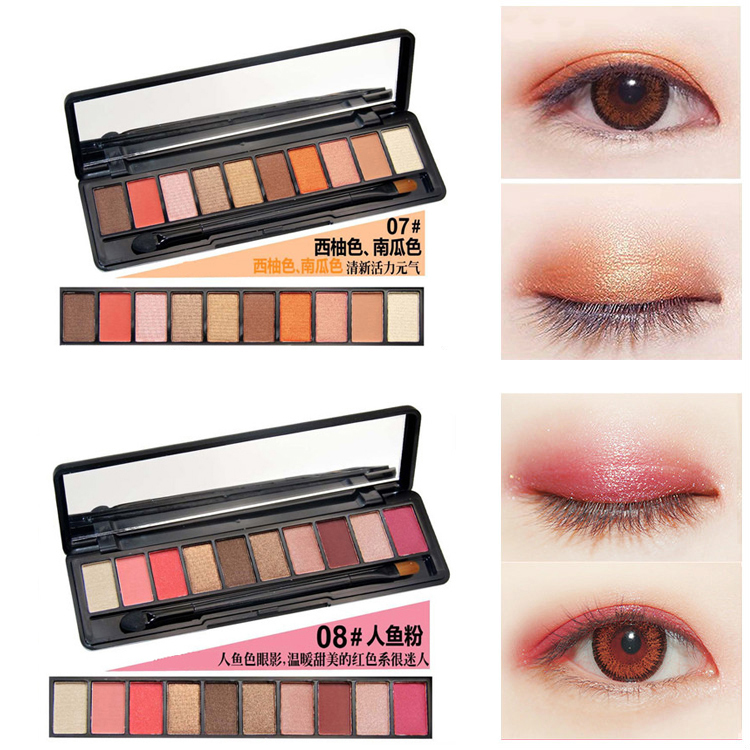 Fine pink matt pearlescent earth color eye shadow disc lasting waterproof without fainting 10 color eye shadow nude makeup beginners