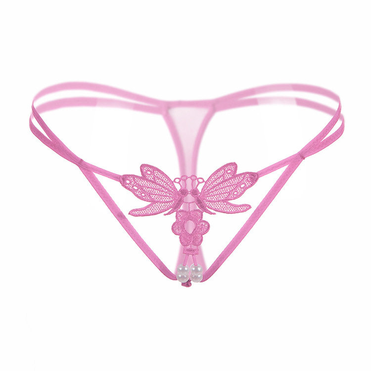 European and American exquisite embroidered thong women's pearl hollow low-waist underwear fully breathable sexy underwear T pants 2039