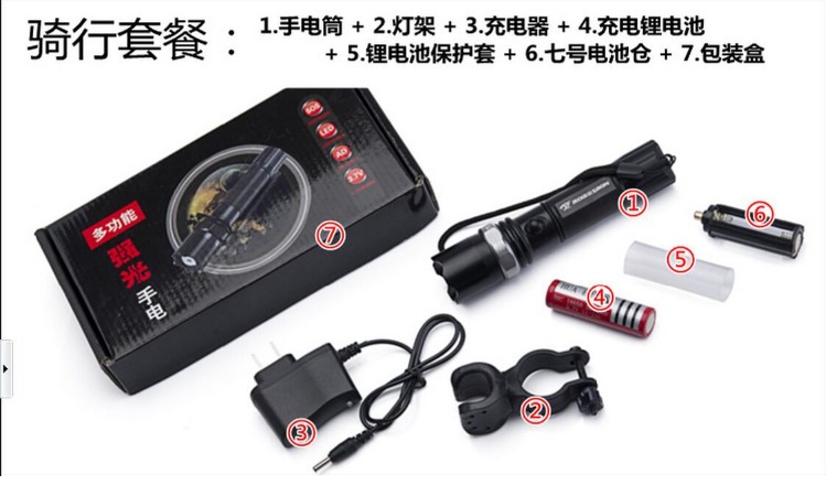 Outdoor waterproof riding flashlight Strong light LED burst bright strong light small flashlight long-range rechargeable zoom Home