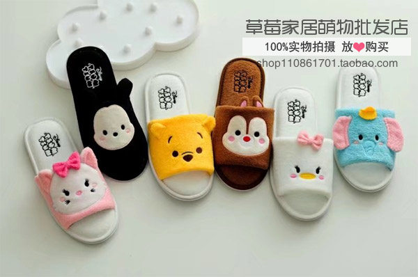 Cute cartoon fingerless slippers home household women's summer indoor wooden floor non-slip sandals and slippers for four seasons