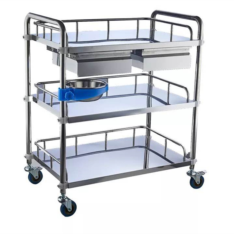 Thickened stainless steel medical trolley instrument treatment operation multifunctional beauty cart physiotherapy equipment rescue vehicle