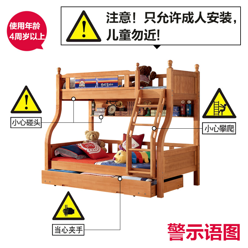 Solid wood high and low bed primary and secondary bed up and down 1 21 5 m Adult American children's bed High box bed storage combined bed