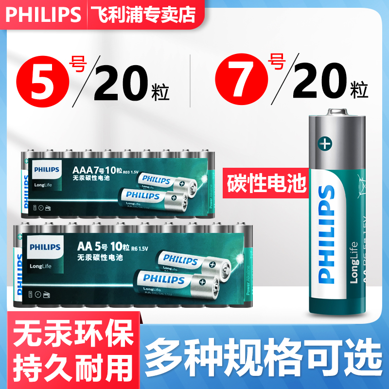 Philips Carbon V Number 5 Dry Battery 5 Number 7 40 grains 20 Grain Boxed Festival Children Toy Air Conditioning TV Remote Control AAA General Battery 1 5V Slide Mouse Hanging watch Watch AA