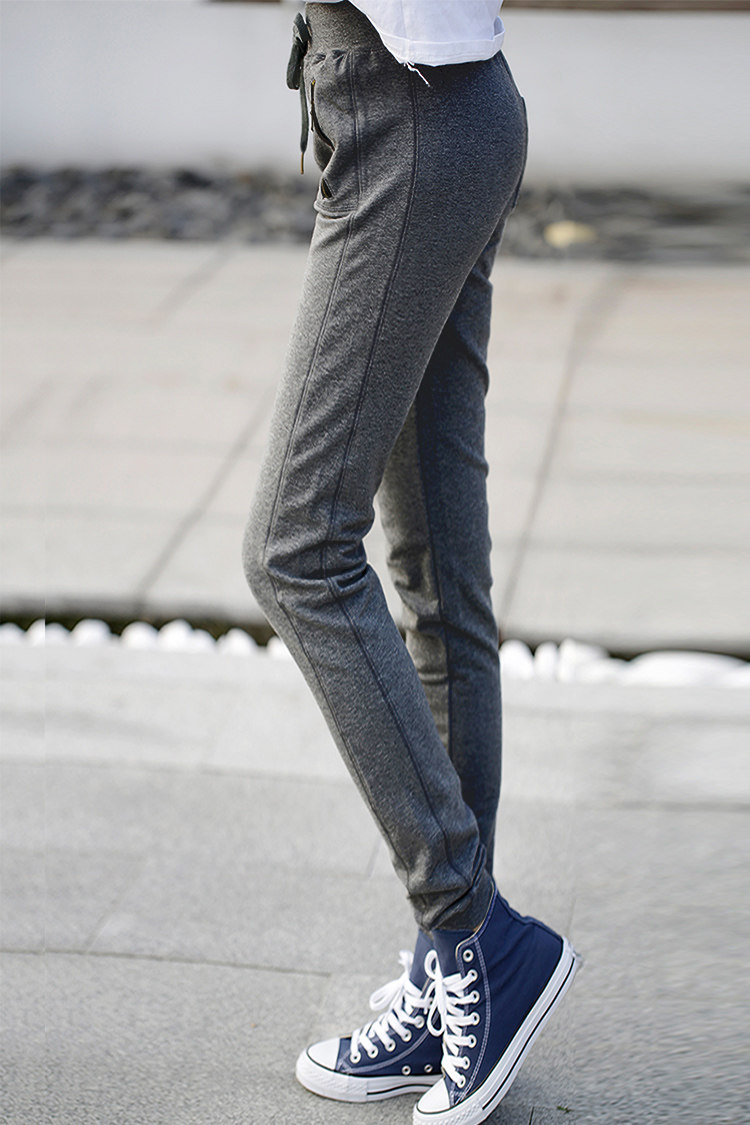 Spring Autumn Long Legs Tall Sub Casual Thick Cotton Pants Lengthened Women's Pants Pull Chain Running Fitness Narrow Stomp Sports Pants 170 Splicing