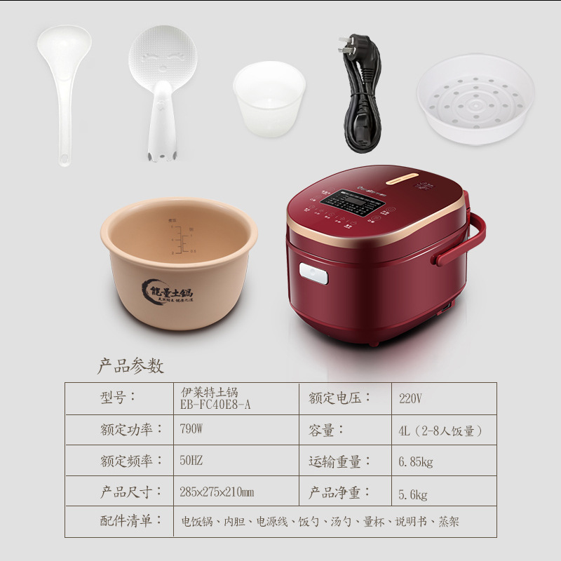 Elite EB-FC40E8-A Health Energy Clay Pot Liner Smart Home Clay Rice Cooker 1-6 People