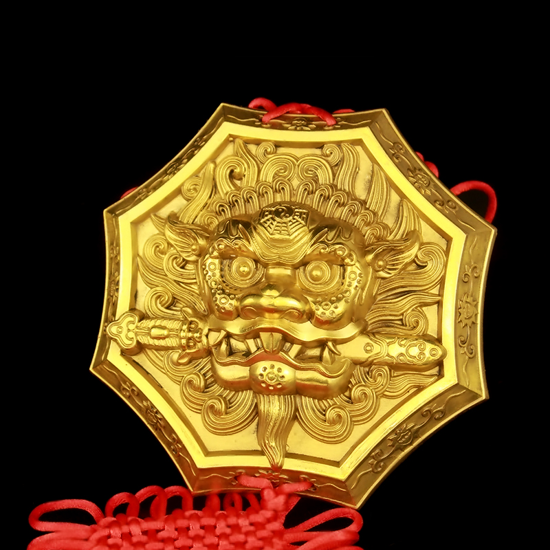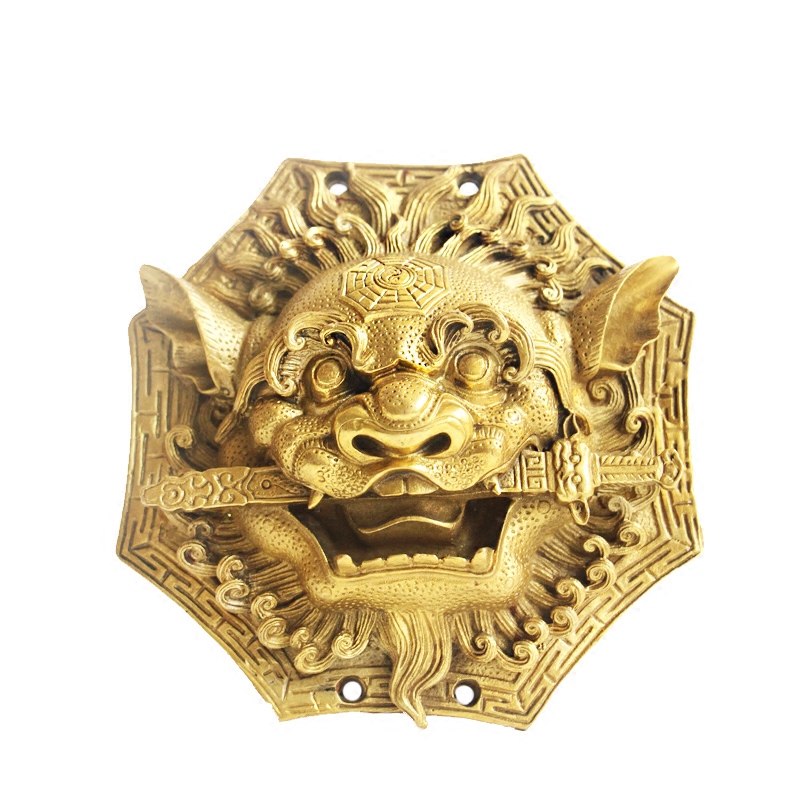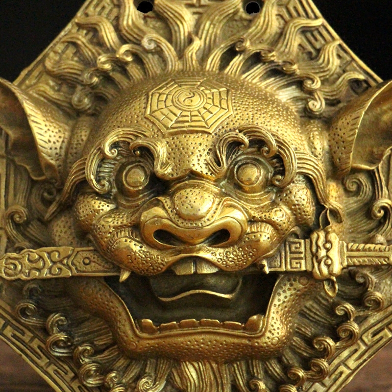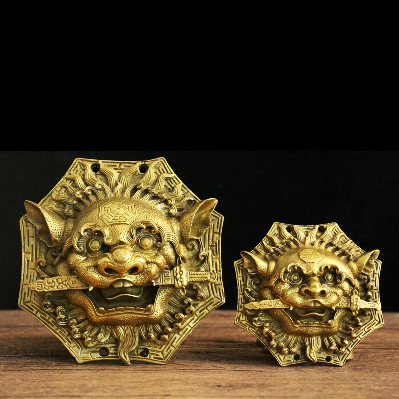 Pure Bronze Lion Bite Sword Eight Divination Mirror Lion Tiger Head Card Beast Head of Swaying Pieces Home Door to Door Defuse Pendant