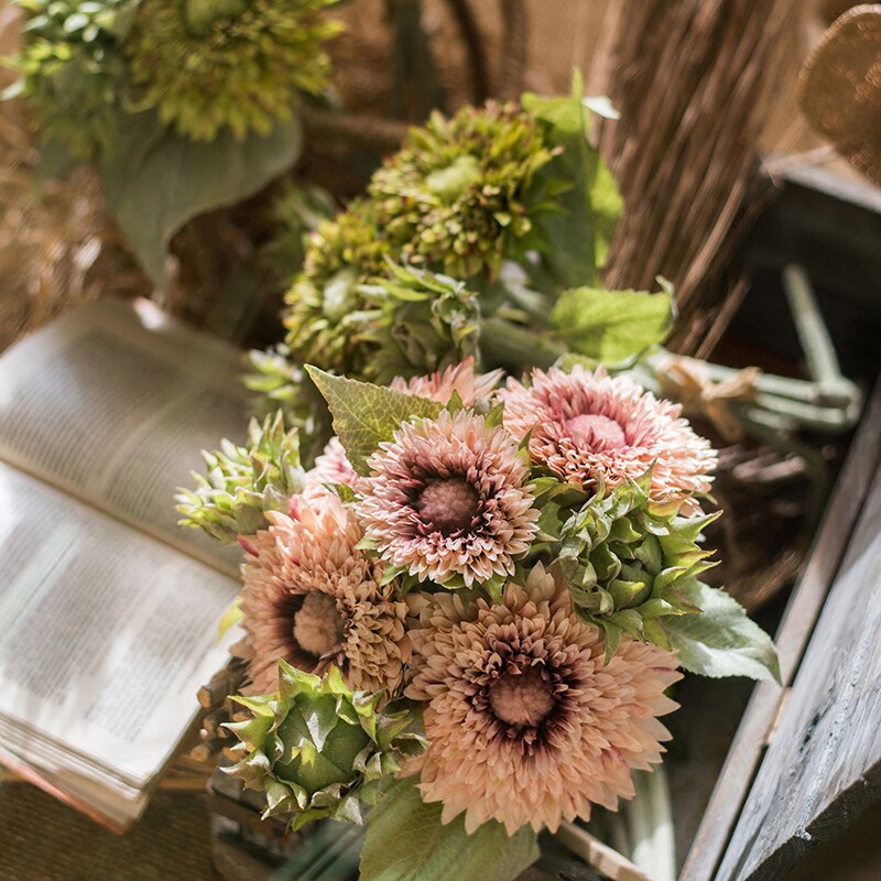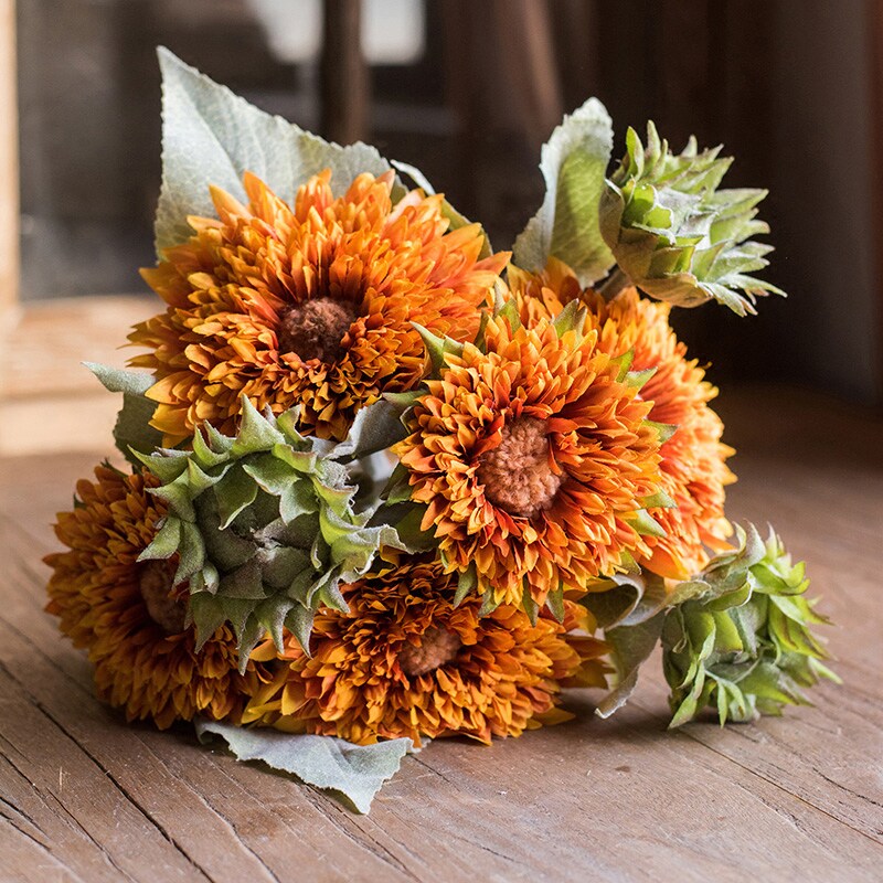 Culvert Small Bear Sunflower Dry Flower Emulation Flower Bouquet Ornament Floral Decoration Art Fake Flower Pendulum to hold flower props-Taobao