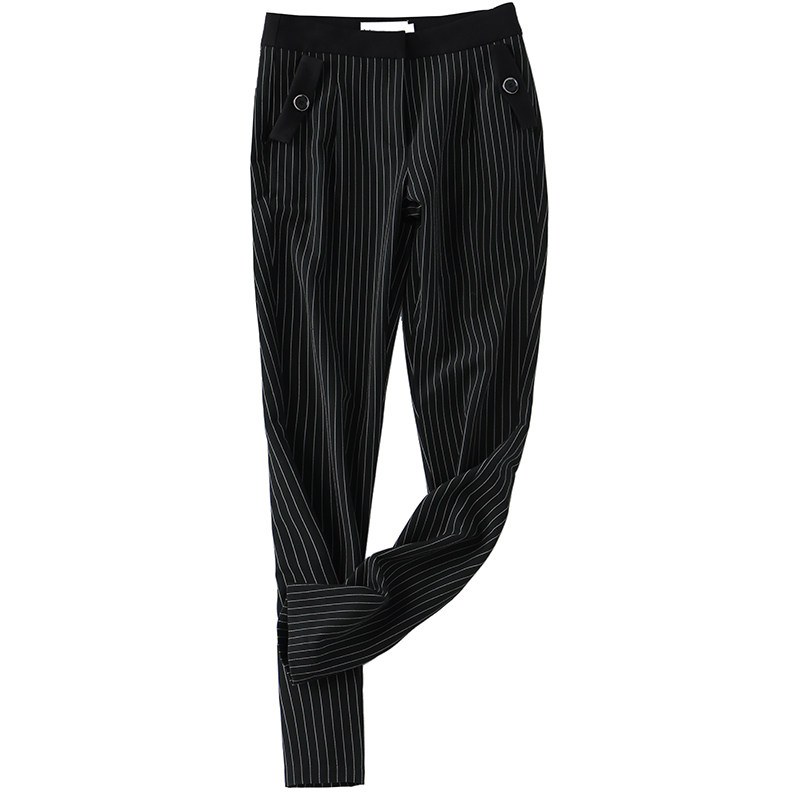 Summer thin tapered old daddy pants working pants tall and lengthened women pants stripes Harun small pants feet 175 Career long pants