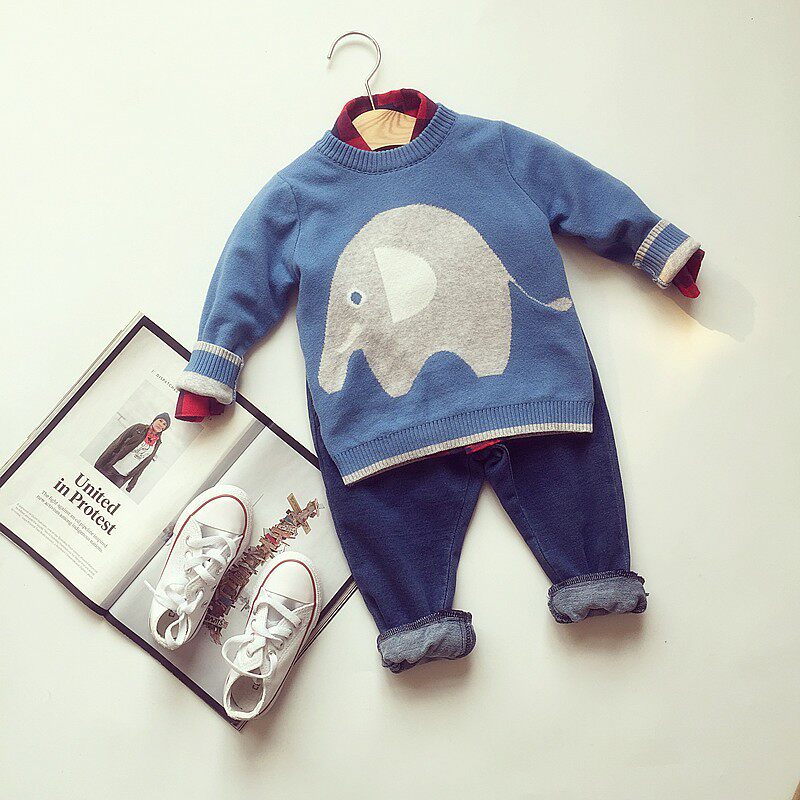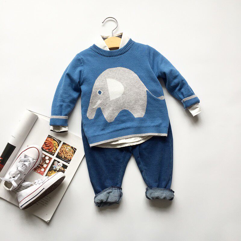 Blue Grey Elephant Sweater