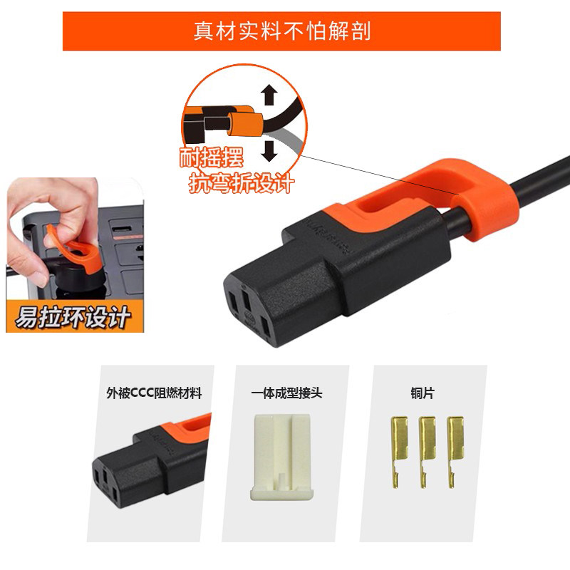 Bauer Xingke power cord one-second pure copper one-drag two-product word three-hole Y-type desktop computer host display