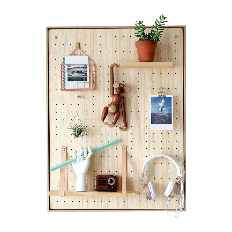 Wood hole board Solid wood picture frame Multi-functional wood storage bedroom household porous board wall wall shelf