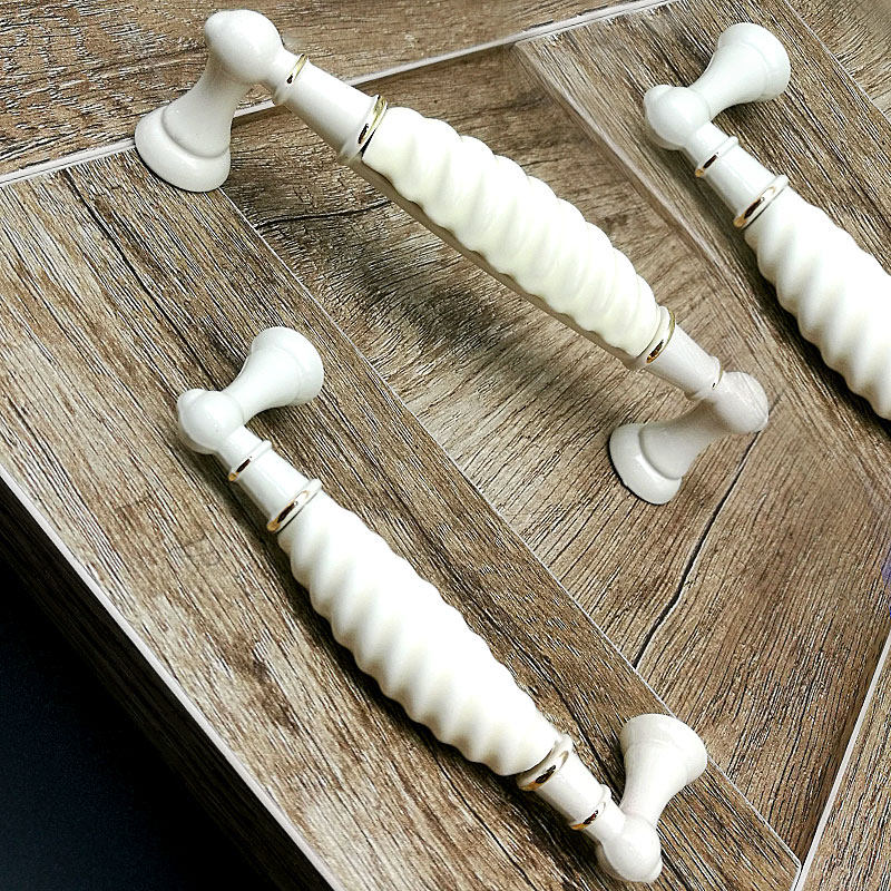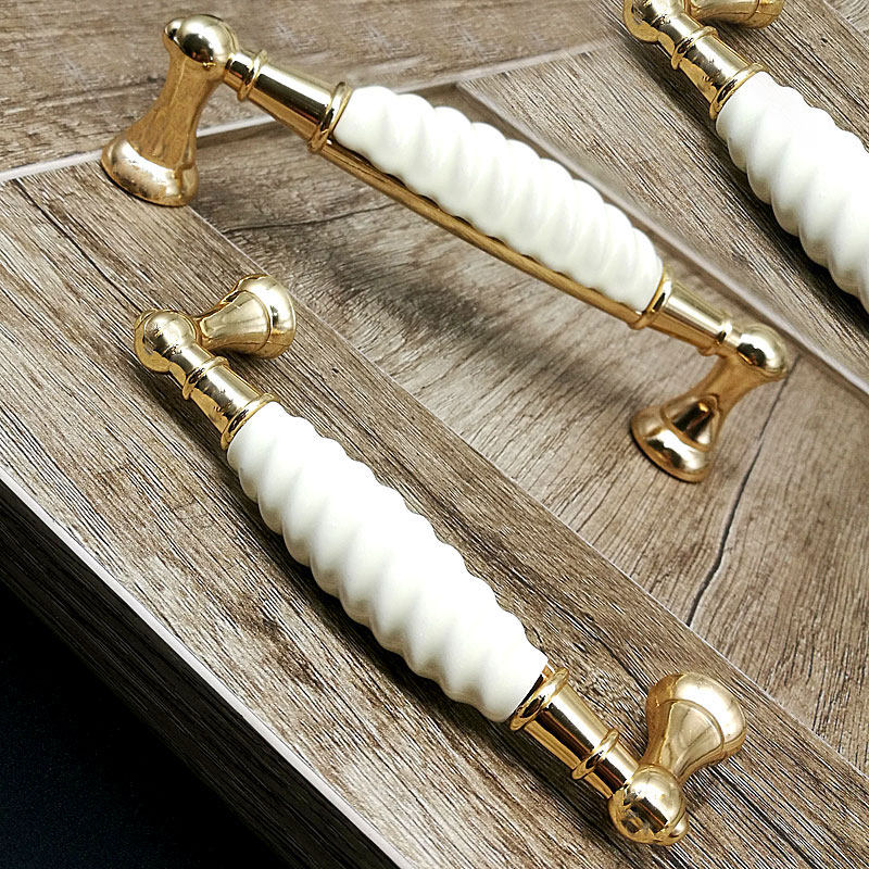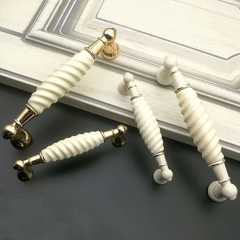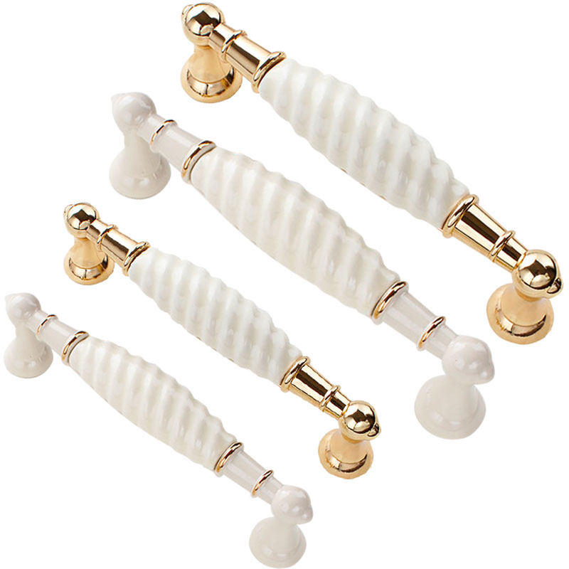 Cabinet door handle golden ceramic white porcelain European pastoral wardrobe overall cabinet door light luxury ivory white furniture cabinet door handle