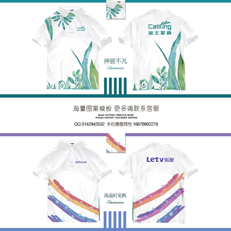 Full body print turn collar high-end turn collar pattern can customize the silk light cotton intercolor turnover