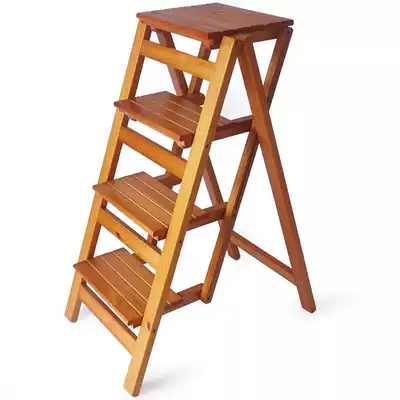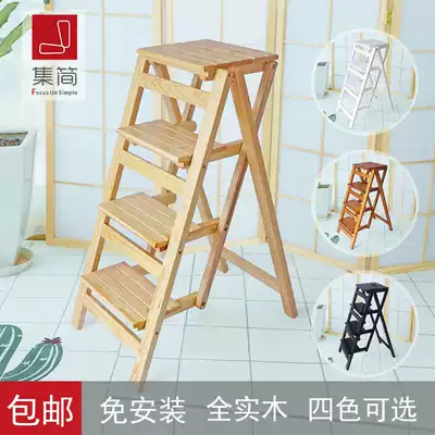 Height-free installation of household thickening multi-function folding ladder solid wood four-step climbing ladder shelf