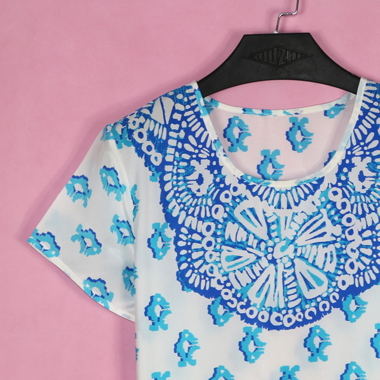 Spring and summer plus size women's mulberry silk short-sleeved blouse fashion casual simple style mother-in-law silk bottoming round neck shirt