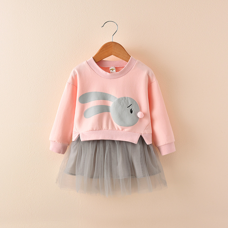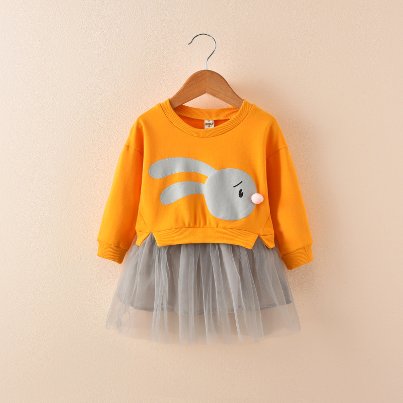 2023 spring new girls' dress Korean version cute baby flower stitching dress all-match mesh skirt