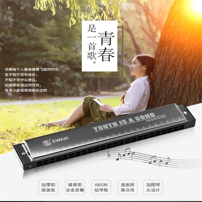 Swan card C tune 24 holes polyphonic black blue red Golden harmonica with notes practice self-study adult instruments