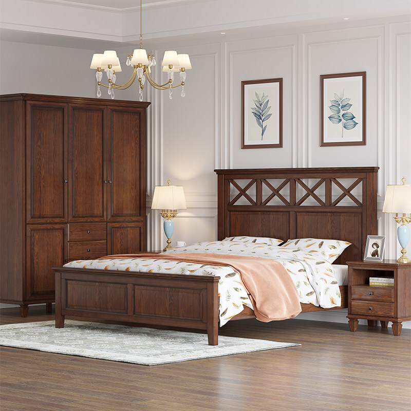 American full pure solid wood double bed makeup table three-door wardrobe desk dining cabinet bedside table several bedroom furniture