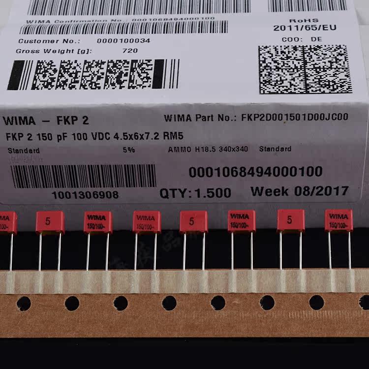 WIMA 150pF 151 100V 0 15n FKP2 Series Original German Red Weima Film Capacitor Ma