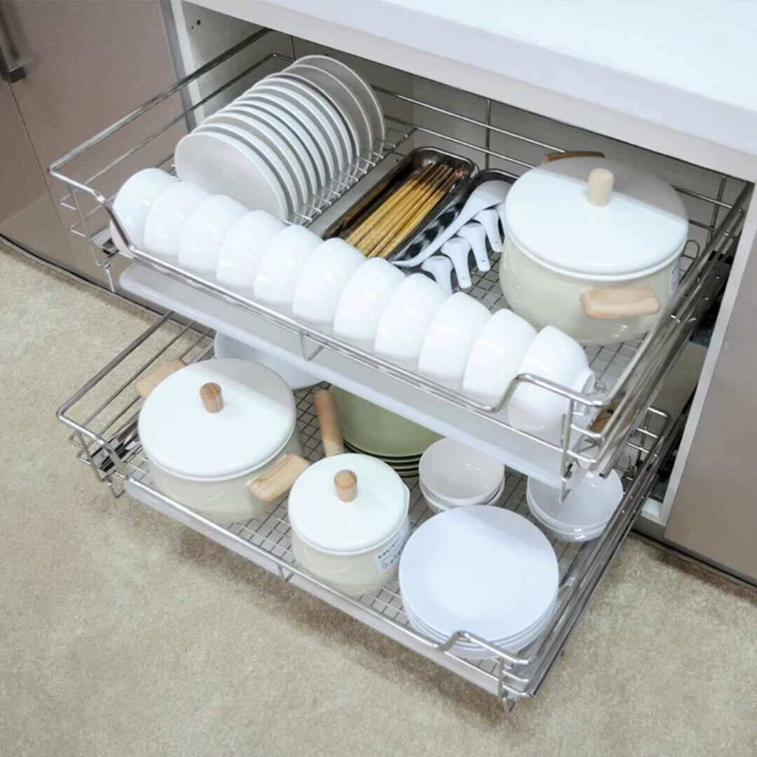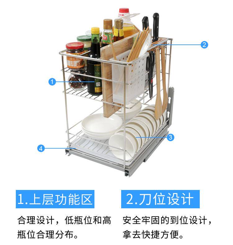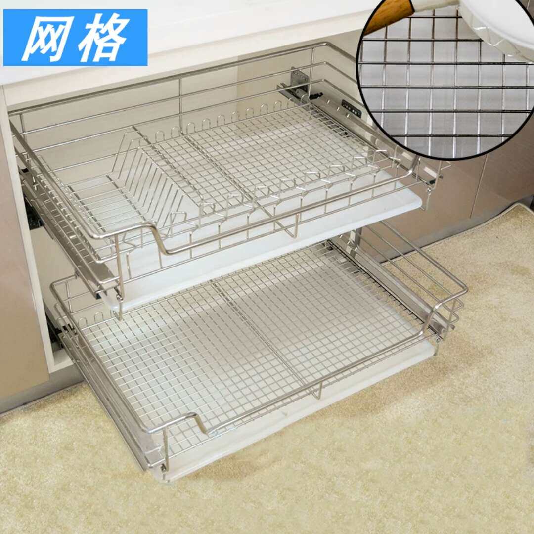 Pull the basket bowl kitchen cabinet built in buffer drawer type pure stainless steel mesh dish flavor basket double layer