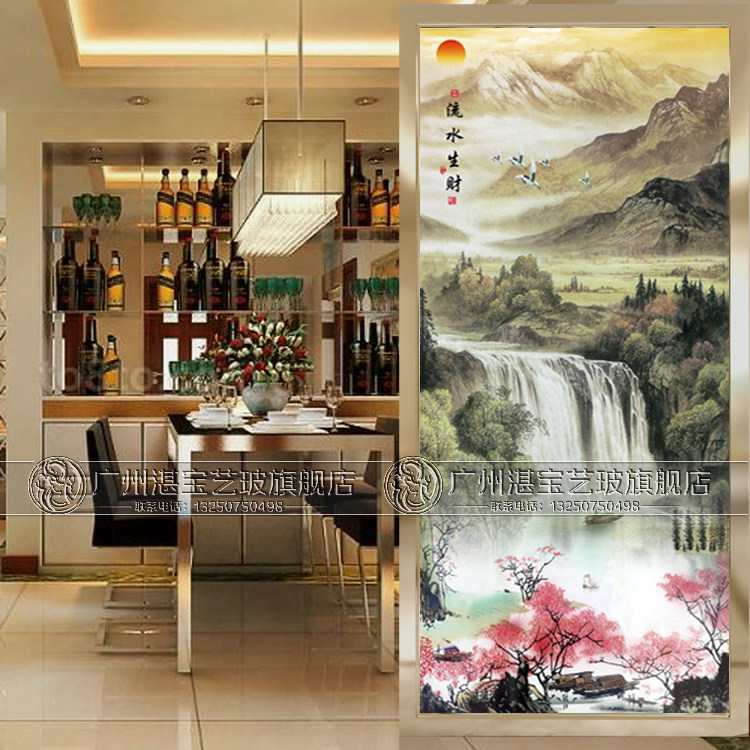 Art glass entrance aisle TV background wall screen partition Chinese simple double-sided translucent living room landscape painting