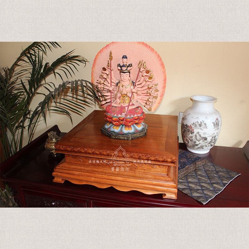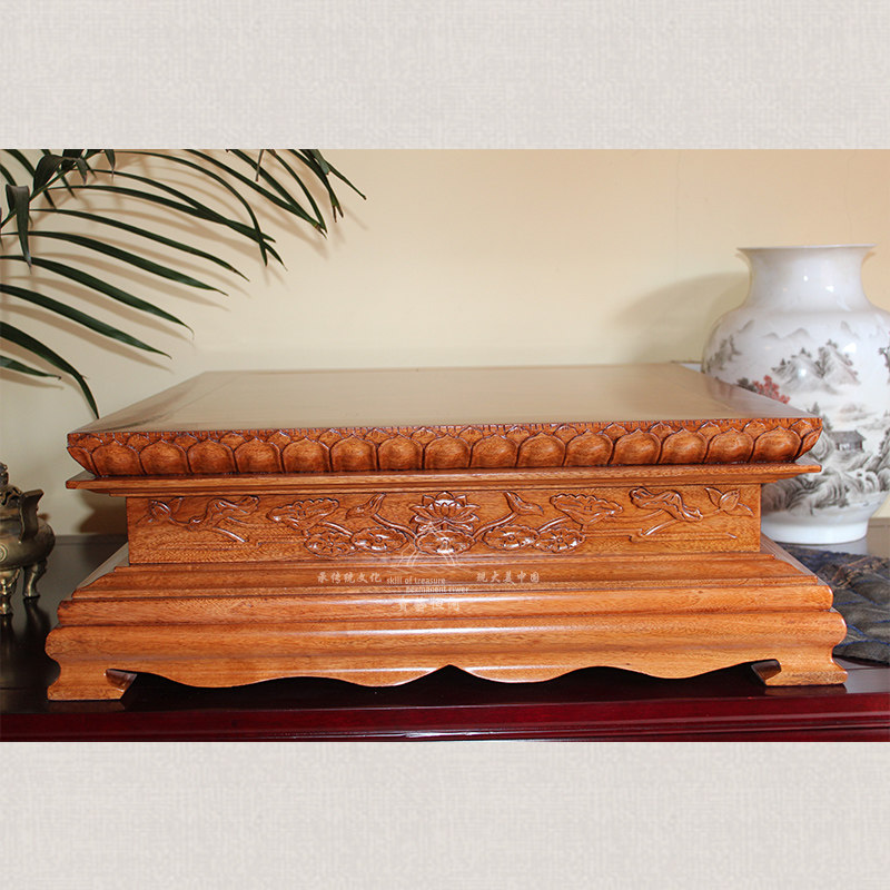 Camphor wood Buddha niche base Guanyin Buddha statue base Solid wood lotus base King Kong platform Buddha lotus platform