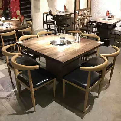 Self-service hot pot BARBECUE skewer skewer shop smoke-free hot pot table induction cooker integrated restaurant Solid wood dining table and chair Commercial