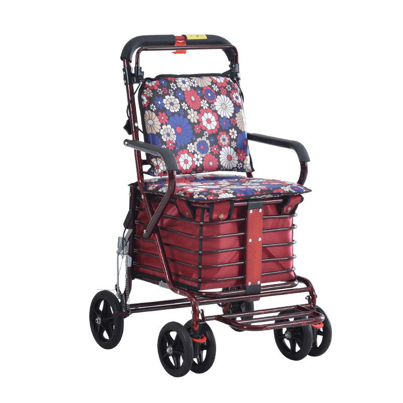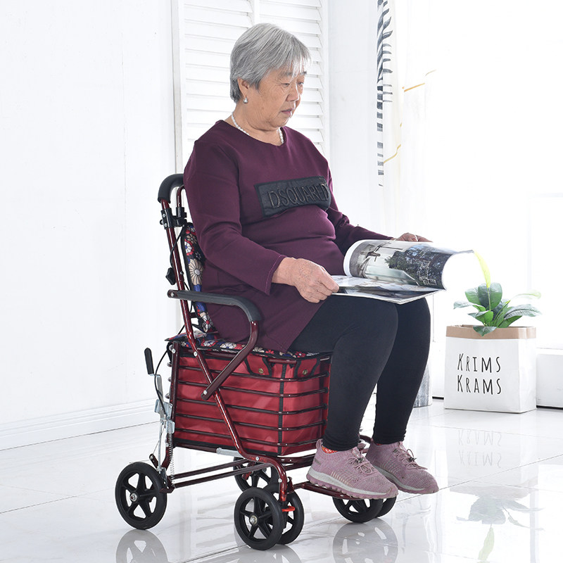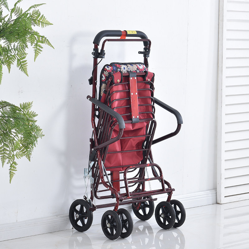 The elderly cart can be pushed and can be driven by a car to help the walking folding shopping cart for the elderly four-wheeled light small pull cart leisure shopping cart