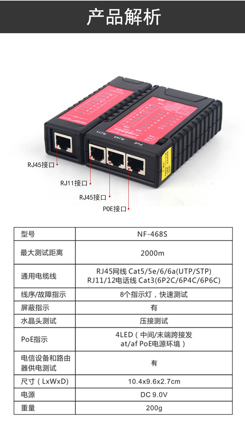 NF - 468 468S 466 wire telephone line tester for savvy rat anti - burn POE