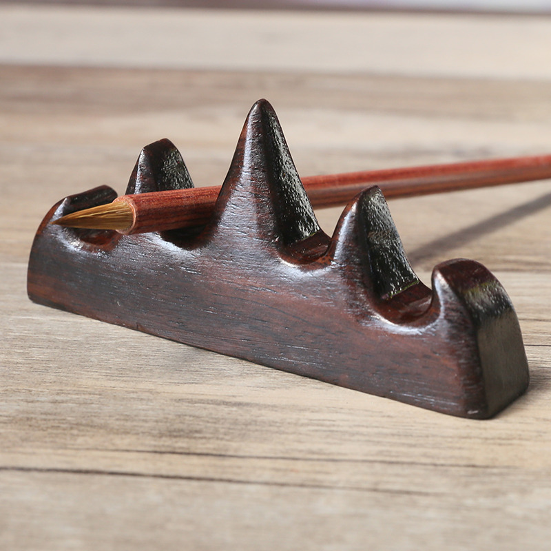 Long book Wenfang Sibao Pen shelf Black Azusa Wood brush pen rack Pen hanging Mahogany Solid Wood Wuzhishan Pen Mountain Calligraphy supplies