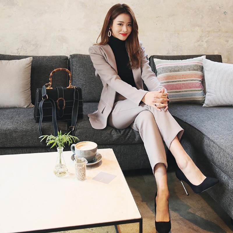 Korean version 2021 spring new small suit two-piece women's casual suit jacket nine-point pants fashion suit tide