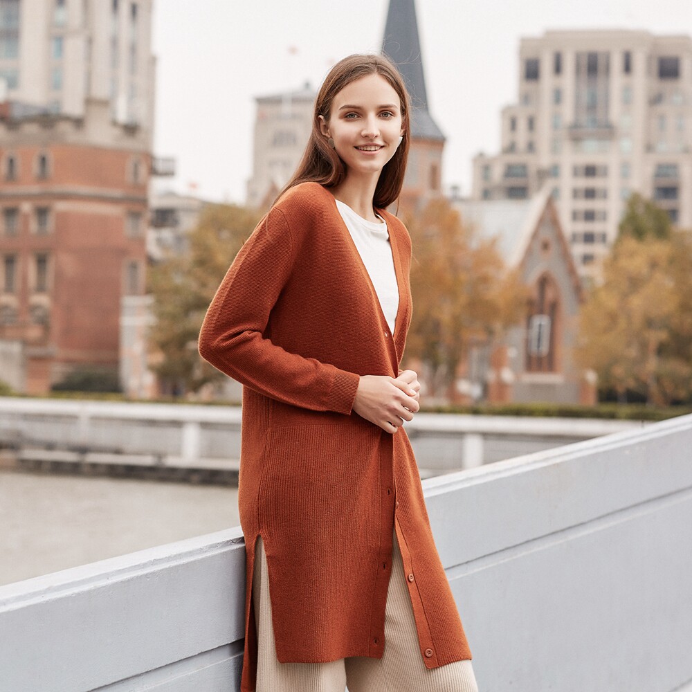 MECITY Women Dress Autumn Winter Elegance Medium Long Version Minimalist Fashion V Collar Knit Cardiovert Jacket 525609