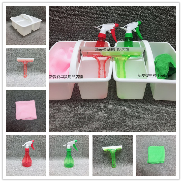 3-g containing basket 1 polished glass suit-red polished glass suit-green green spray pot 1 red spray pot 1 green squeegee 1 red squeegee 1 child sprinkle kettle 1