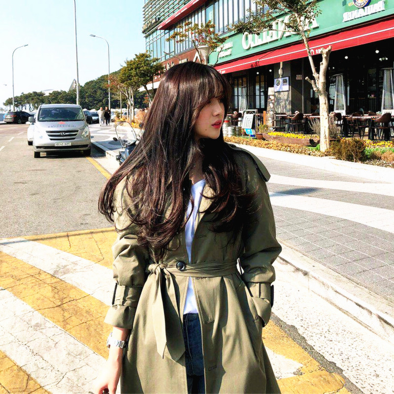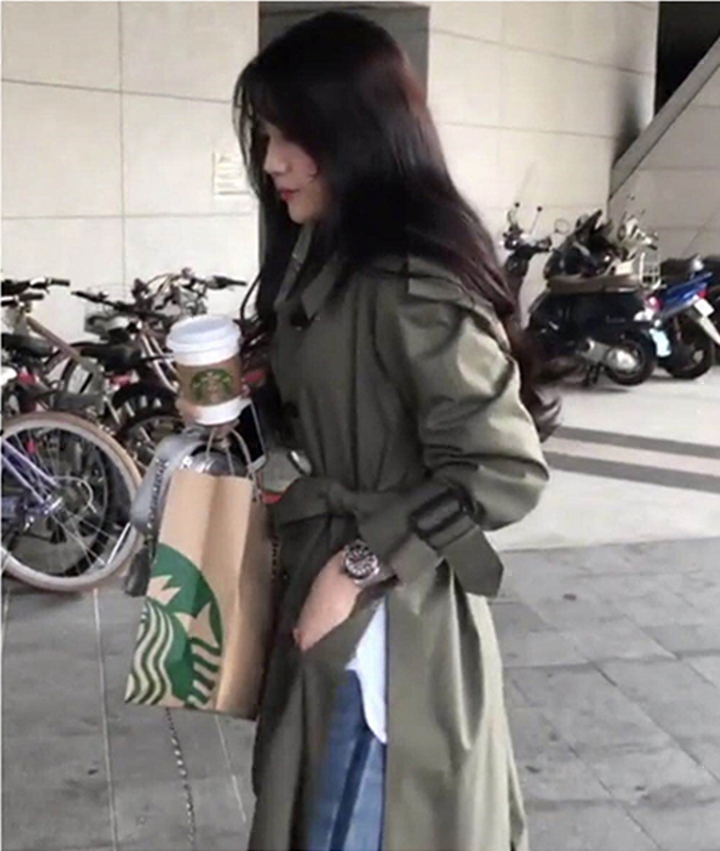 Korean windshirt woman in the long Korean version of autumn female 2023 new gas loose side cross the knee coat