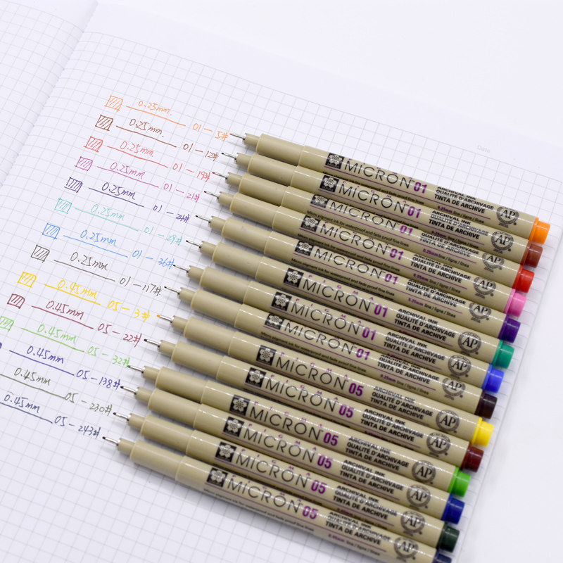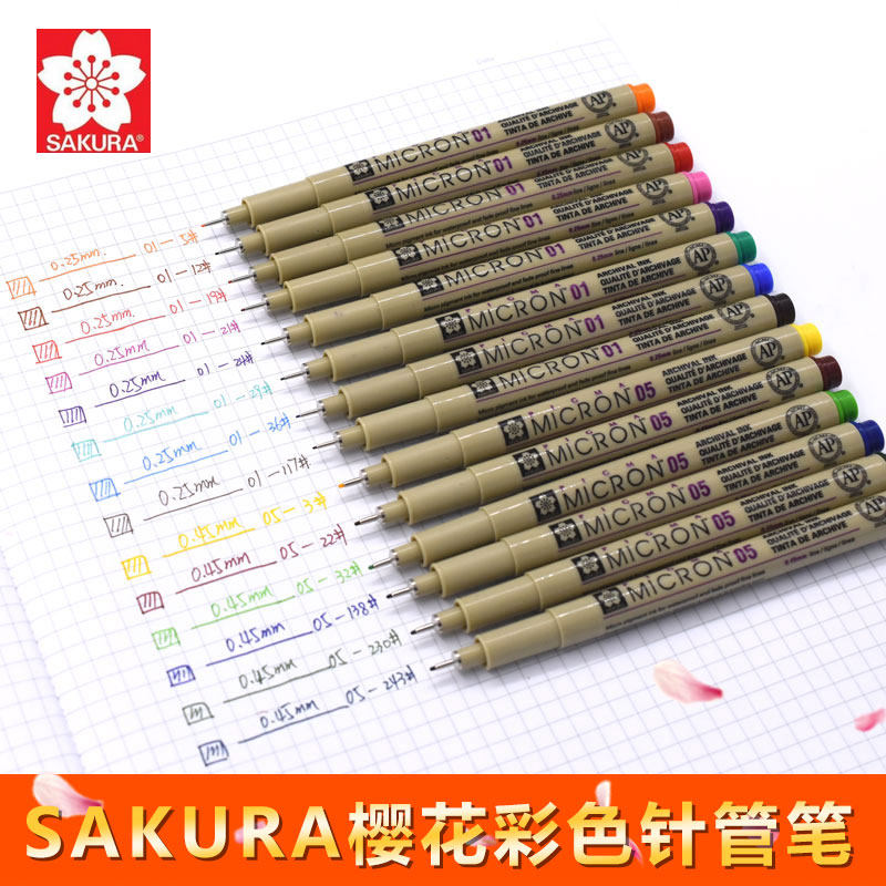 Japan sakura Cherry blossom color needle tube pen Water resistant waterproof student art drawing stroke stroke line hook pen Architectural design comic drawing hand drawn color brown red multi-color hook pen