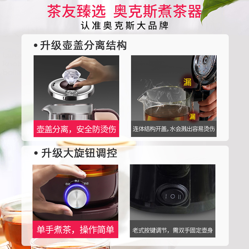Oaks tea maker black tea Pu'er glass electric kettle steam teapot fully automatic insulation steam electric boiled teapot