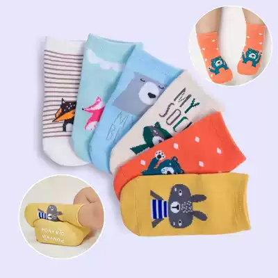 Baby spring and autumn cotton short barrel anti-slip socks 0-3 years old Korean striped cartoon cotton early education floor socks