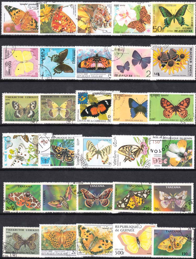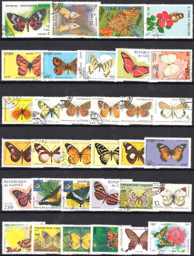 Foreign World Insects Butterfly Pupa Special Stamps 100 different collections of 100 different - hundred